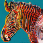 Included in this section are prints from his “Endangered Species” portfolio, which contains colorful, stylized images of animals such as a panda, a black rhinoceros and a Grévy’s zebra.