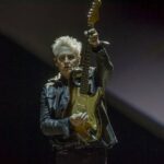 For the encore, Vedder returned by himself, taking an acoustic guitar and a stool at center stage to play Springsteen’s “My City of Ruins” before the band rejoined for a moving “Man of the Hour.”