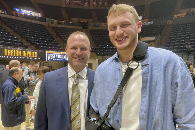 MORGANTOWN, W.Va. — New West Virginia coach Darian DeVries brought some reinforcements from Drake. Tucker DeVries sat in the front row for his father’s introductory news conference Thursday as Darian announced that his son, a two-time Missouri Valley Conference Player of the Year, is joining him with the Mountaineers. That...