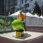 A new challenge has arrived for the Picklesburgh fan base — riding a mechanical pickle.