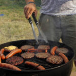 If you are cooking food by the direct method (hamburgers, hot dogs, boneless chicken breasts, small steaks, vegetables, etc.), flip only once halfway through the cooking time. All protein will stick to the grates as soon as it makes contact with the hot grill grates. As it cooks, it will naturally release itself, and that is when you can turn it over with a pair of tongs. Just remember to oil the food, not the grates!