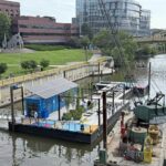 The platform offers a space to lounge, enjoy river views and participate in a rotating calendar of free programs, including yoga, live music and arts workshops.