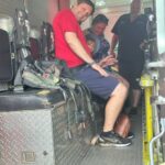 “She’s not one bit scared,” said Elaine as they entered the back of the fire engine.