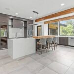 The five-bedroom/five-bathroom home offers almost 6,000 square feet of living space with an 11-foot island in the kitchen and a floating staircase leading to the second floor.