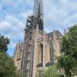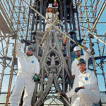 Two areas of scaffolding — one on the side of the building and another area around the spire, each rising more than 100 feet — were needed to reach the top of the spire, or flèche.