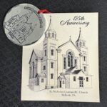 The anniversary planning committee collaborated with Wendell August Forge in Grove City to make a holiday ornament of the church for $20. It is available before and after Mass and will be sold the day of the anniversary celebration.