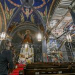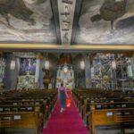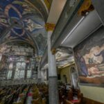 The place of worship is home to murals by Croatian-born artist Maximilian “Maxo” Vanka that depict the history of the church’s immigrant founders. Some of those first parishioners were drawn in the paintings. One is holding a replica of the church, showing that the people are the church.