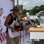 Once Starr received his sandwich order, the line to get to the chainsaw only took around 20 minutes.