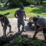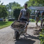 With the temperature at a staggering 92 before noon, Jeremy Ricketts, 34, Logan O’Donnell, 20, Brady Kemp, 24, and Brian Baker, 47, had already cleared out 4 tons of dirt from the yard.