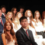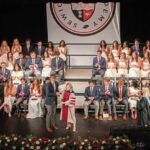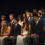 The young men wore Navy blue or black sport coats along with white button-up shirts and red ties while the young women wore white dresses and other white formal attire.
