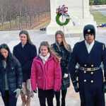 Students Charlotte Coleman, Kristen Fiedler, Madison Milkovich and Charlotte Morton were selected after winning the grade 8 essay contest to participate in the laying of a wreath during the Changing of the Guard at Arlington National Cemetery.