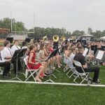 The high school band, under the direction of conductor James Mirabella, played “Pomp and Circumstance” as seniors made their way onto the field. It also performed “Red Rock Mountain.”