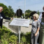 The late David Schaub was a longtime physician at Allegheny Valley. In addition to the landscaped greenery and benches, there is a flagpole and commemorative signs to honor Schaub’s work.