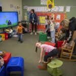 The meeting participants — 3- and 4-year-olds at the Watson Institute’s LEAP preschool in Sharpsburg — follow suit, singing and dancing on a colorful mat near a big-screen TV.