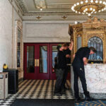 That has come in unexpected ways — as layers of paint were stripped away during the ticket booth project, it revealed the original gilt paint and Manos engraving, hearkening to its early days as the Manos Theatre.