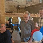 Peachey, 86, celebrated his achievement with about 150 family, friends and bicycling acquaintances Saturday afternoon at the West Overton Village events barn near Scottdale.