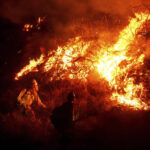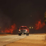 “Other people are hosing down their houses, too. I hope there’s a house here to return to,” Amara said as police cars raced through the streets and flames engulfed trees on a hillside in the distance.