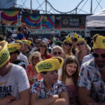 The annual gastronomic battle, which dates back to 1972, is held in front of the original Nathan’s Famous restaurant at New York’s Coney Island and draws large crowds of fans, many wearing foam hot dog hats.