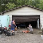 Rich Templin, his wife Michelle and a family friend were cleaning out two storage garages Monday across the street from their Triadelphia home. The garages situated along ground by Little Wheeling Creek were nearly destroyed by floodwaters. Templin’s home on higher ground was untouched.