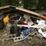 In the northern panhandle, vehicles were swept into swollen creeks, some people sought safety in trees and a mobile home caught fire. On Sunday, Morrisey toured the small community of Triadelphia, where five died.