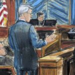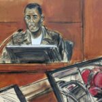 Combs seemed subdued as Cudi testified. Although he looked toward the witness stand, neither man seemed to react to the other. Cudi didn’t look at Combs when he left the stand. Wearing jeans and a black leather jacket, Cudi arrived at the courthouse smoking a cigarette while someone held an umbrella over him in the rain. He didn’t speak to reporters while leaving.
