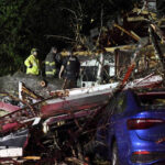 Hollman said the storm hurled large HVAC units from the tops of building, ripped the roof off a bookstore and damaged a brick building adjacent to a veteran’s museum. A full-sized, stripped down military helicopter was toppled from a pole where it was on display, she added.