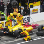 Josef Newgarden’s bid to win three consecutive Indy 500s ended with a fuel pump issue. He was trying to become the first driver to come from the back row to win because he and Team Penske teammate Will Power were dropped to the back of the field for failing inspection before qualifying.