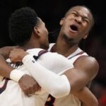 ATLANTA — Johni Broome held his injured right arm through most of Auburn’s Elite Eight postgame celebration.