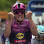 Pedersen’s plan almost didn’t go to plan, though, as a dog raced across the road in the finale, narrowly avoiding the surging, Lidl-Trek-driven peloton, with just over 2 kilometers remaining.