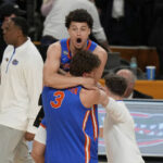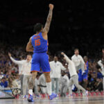 Florida made one free throw on the next possession and that set up the finale. The ball first went to L.J. Cryer — who led the Cougars with 19 points. Blanketed by Richard, he threw to Sharp, who was moving to spot up for a 3 when Clayton ran at him. That left him with no choice but to let the ball go.