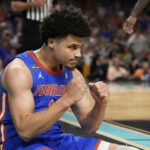 He was 0 for 4 from the field without a point through the first half. He didn’t score until 14:57 remained in the game. He finished with one 3-pointer and, before that, a pair of three-point plays that kept the Gators in striking range.