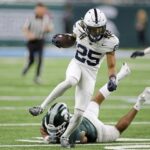 After returning two punts for touchdowns against UMass (56 and 68 yards), he became the first player in Penn State history to return multiple punts for touchdowns in a game. Since 2000, Hardy is the 25th FBS player to return two punts for touchdowns in a game and one of two Big Ten players, joining Iowa’s Kevonte Martin-Manley (vs. Western Michigan, 2013).