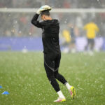 Germany goalkeeper Marc-André ter Stegen and reserve keepers Oliver Baumann and Alexander Nübel had to run for cover from a heavy hail shower as they warmed up, and referee Slavko Vinčić checked the field afterward to make sure Wednesday’s game could go ahead, albeit with the slight delay.