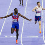 In the evening’s final race, American Rai Benjamin finally pulled out of the shadow of world-record holder Karsten Warholm, getting his first individual major title by blowing past the defending champion in 46.46 seconds.