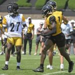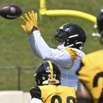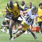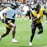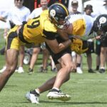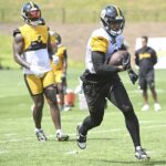 • Rookie Max Hurleman for the first time during camp lined up in the backfield for a few snaps and was given a carry as a running back. Hurleman mostly has played wide receiver so far for the Steelers, though he was listed as a defensive back for Notre Dame last season. Hurleman played offense before 2024 when he was at Colgate.
