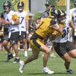 Wilson, on the short list of potential breakout players for the Steelers this season, has plenty of eyes on him at camp. Coach Mike Tomlin singled Wilson out (along with veteran running back Kenneth Gainwell) as a player he most anticipated watching in the annual “backs on backers” drill that was to debut Tuesday but was postponed after rain washed out practice.