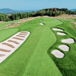 The famed “Church Pews” along the left side of the third fairway include thick strips of grass pews spaced throughout a lengthy sand trap, creating a large hazard that can take more than one shot to escape. It is a photogenic bucket list item to witness from above and around the course, and it’s a popular place for drones and TV camera shots. But the Church Pews can be a nightmare for golfers unfortunate enough to spray a tee shot to the left off the third tee.